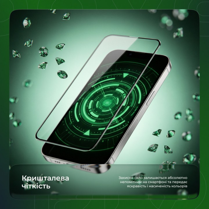 Скло надійно оберігає екран смартфона від ударів, подряпин і інших пошкоджень завдяки високій твердості. Незважаючи на свою міцність, скло залишається досить тонким, що дозволяє зберігати чіткість зображення та природні кольори без викривлень.