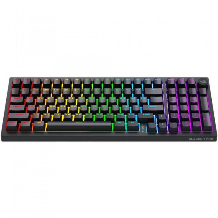 Клавіатура повнорозмірна, має блок NUM-pad, включно з додатковою кнопкою керування звуком. Ефекти та підсвітку можна налаштувати під себе – нічого зайвого, усе зручно та просто. Технологія Hot-Swap дозволяє без проблем замінити перемикачі Gateron G Pro 3.0 Yellow на будь-які бажані.