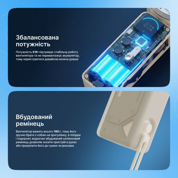 Швидкість обертання від 4428 до 9240 об/хв і потік повітря до 9.3 м/с забезпечують регульовану інтенсивність роботи. Потужність 6W дозволяє підтримувати стабільну продуктивність при низькому енергоспоживанні. Технологія охолоджувальної пластини миттєво знижує температуру повітряного потоку, забезпечуючи більш інтенсивне та освіжаюче охолодження.