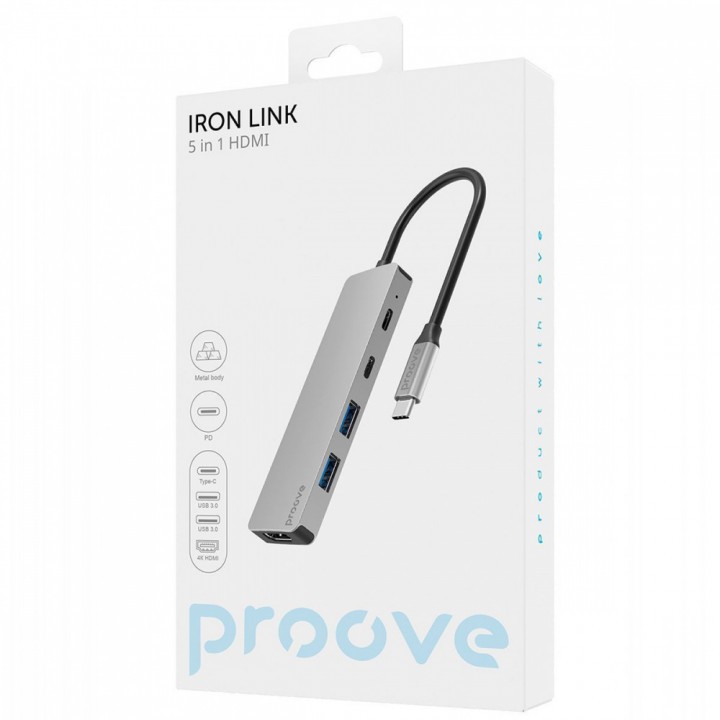 Type-C-Хаб Proove Iron Link 5 in 1 (2*Type-C + 2*USB3.0 + HDMI) silver