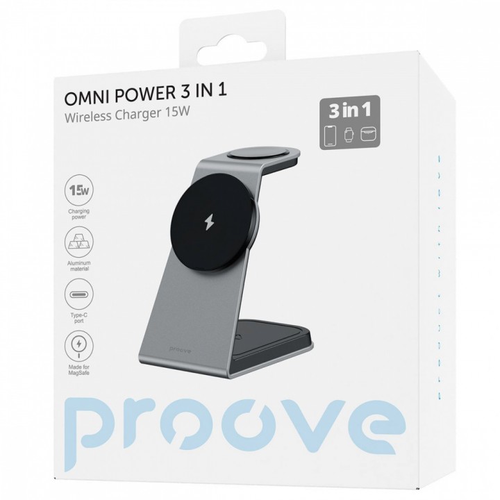 Бездротовий ЗП Proove Omni Power 3 in 1 gray