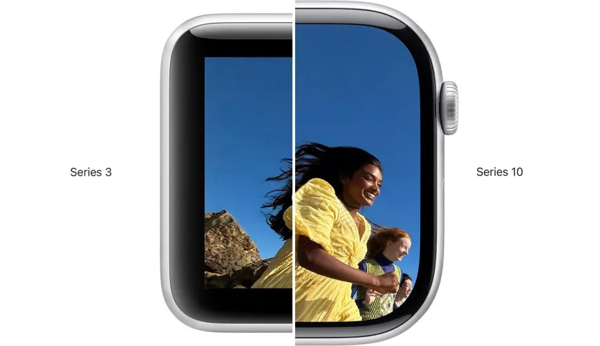 Apple Watch Series 10 виділяється найбільшим екраном у лінійці розумних годинників Apple. У порівнянні з Series 3, екран збільшився на 75%, а з моделями Series 4, 5, 6 та SE — на 30%. Це дозволяє бачити більше інформації та виконувати більше завдань безпосередньо на екрані годинника.